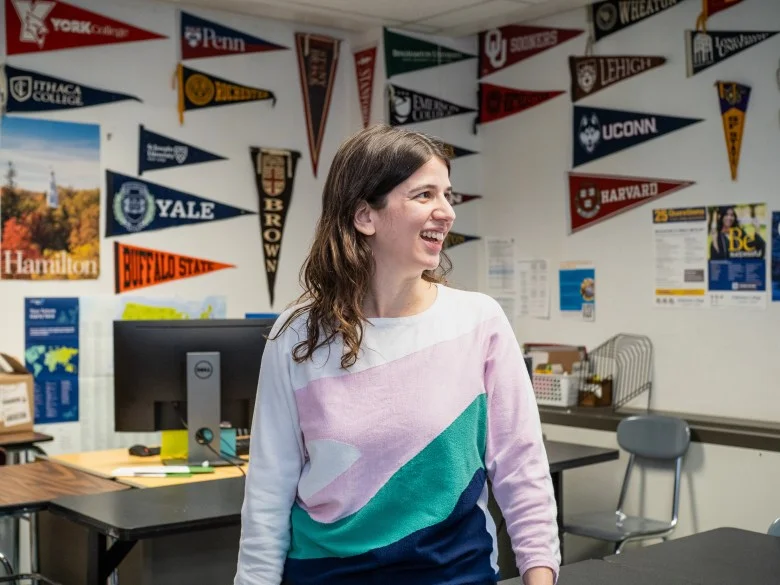 Diana Moldovan at the Urban Assembly School for Law and Justice’s college and career office. Credit: Yunuen Bonaparte for The Hechinger Report